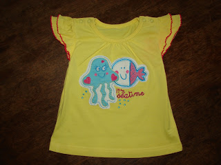Asa e! Fiecare hainuta poarta cate o poveste dupa ea! Spre exemplu, rochitica de mai jos: e o rochitica galbena superba, pe care fetita mea a purtat-o de multe ori, pentru ca ii statea tare bine!!! Galbenul o prinde extraordinar de bine, iar bunica in mod special a iubit rochitica asta. Eu ii spuneam "fluturas" cand era imbracata cu ea, pentru ca manecutele pareau doua aripioare. Aducea zambete si veselie de doua ori mai mult cand o vedeam imbracata asa! De aceea o iubesc intr-un mod aparte si m-as bucura s-o vad pe o alta fetita "fluturas"! :))