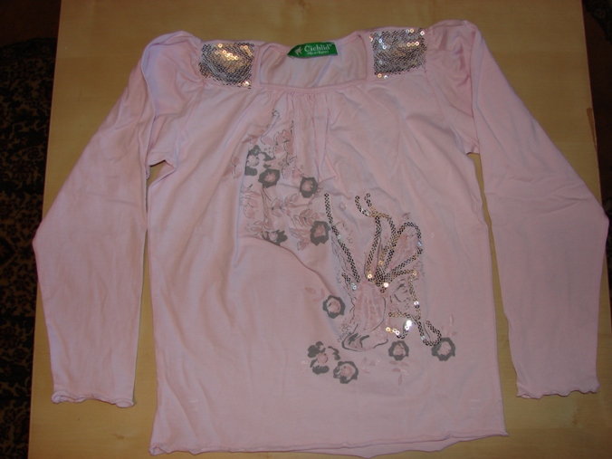 Sunt convinsa ca tuturor fetitelor le place sa sclipeasca si sa fie cat mai cochete, cel putin cat sunt mici! Mai tarziu, fiecare isi dezvolta personalitatea si isi aleg un stil propriu vestimentar:) Pana atunci insa, noi mamicile imbracam fetitele ca niste mici printese, ca niste papusele! :) Bluzita aceasta este ca noua, foarte frumoasa, si sclipicioasa! Pentru iesiri si ocazii deosebite, e foarte potrivita, iar fetita o va adora!